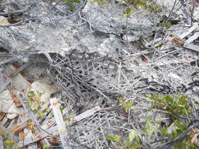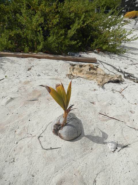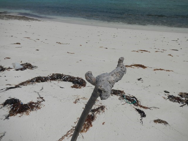 The wind has settled down, but it is still from the NW so anchoring off the town wouldn't be too comfortable. During the day I checked the coupling and strut bolts to make sure everything is tight. In the afternoon Krazy Lady and I hiked on the beach down to the mangroves. There was no deep channel in them for turtles. On the way back up the beach we collected a mountain of sponges that must have washed up into the Sound from elsewhere. At one time the Bahamas were prime sponging grounds, but at some point a blight wiped out most of the sponge beds. | |||||||||||||||||||||||||||||||||||