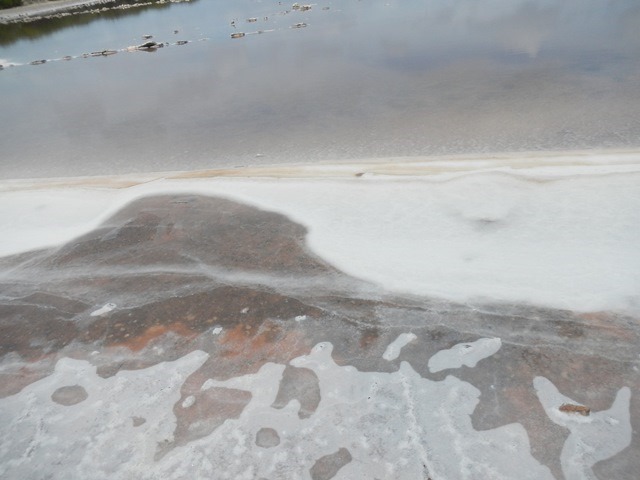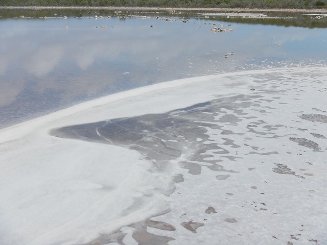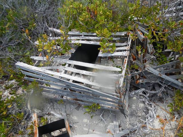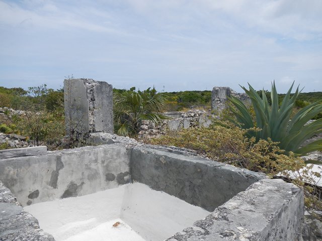 Wing and wing out of the anchorage, to a broad reach, then close hauled after the turn at the Margaret Shoal waypoint. This morning I can see two sailboats headed south. They could be going to Hispaniola and then to the eastern Caribbean or to Cuba. After arrival at Raccoon Cay we hiked around looking for the fresh water well that gives Spanish Well Bay its name. Ann gathered salt at the edge of the salt pond and palm fronds for her basket making. | |||||||||||||||||||||||||||||||||||