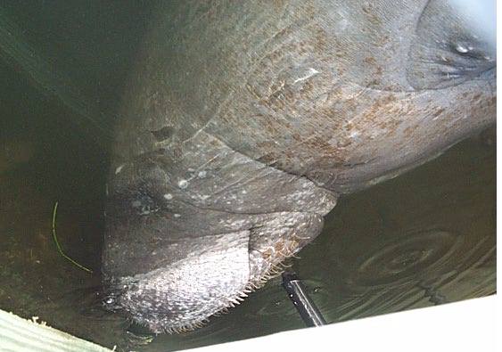 One of the manatees that live in and around the Titusville Municipal Marina. |