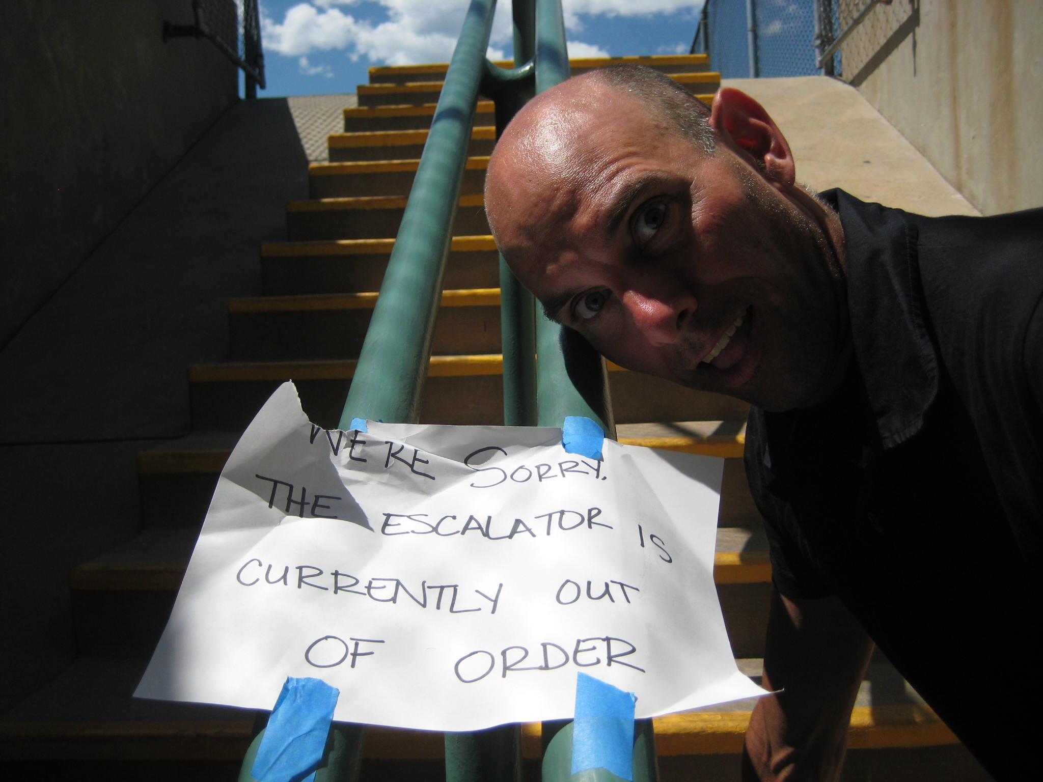 In the two pictures below the oldsters exhibit their humor. Escalator, heck we need an elevator! |