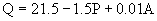 Q=21.5+1-1.5P or P=-2/3Q+15