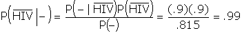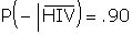 | The probability that a randomly drawn male does not have HIV is 90%. The bar over the event HIV indicates that the event of interest is the complement to HIV, i.e., not having HIV. | |