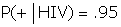 | There are now two events in parentheses: Having HIV and testing positive for HIV. The vertical line is read as "given". The probability statement is read as 'Given that a randomly drawn male has HIV, the probability of testing positive is 95%'. | |