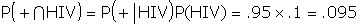 Notice in the two conditional probabilities we have preserved the sense of time: One believes that one may have contracted HIV, then one is tested.