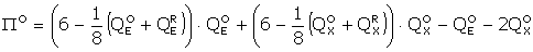 P=2.75 QXR=14 QXO=12 QER=8 Profit=24.50+8 CS=42.25 Pr+CS=74.75 |