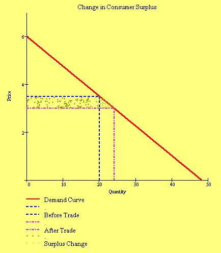 | Erehwon | No Trade | P=$3.5 Q=20 Profit=50 Consumer Surplus=25 P+CS=75 |