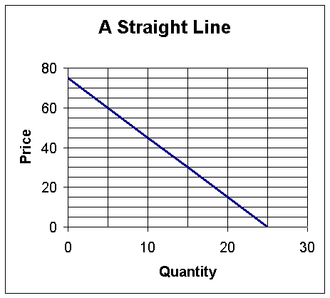 What is the slope of the line given by P=100+3Q?